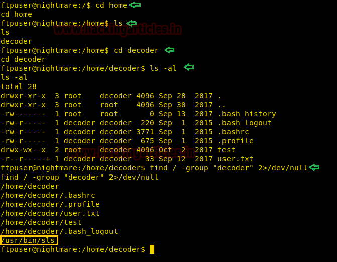 After getting the reverse shell we spawn a TTY shell. Then inside /home/decoder/ directory we find a directory called “test” and user called “user.txt”. As they belong to the “decoder” group, we find files that belong to the “decoder” group.