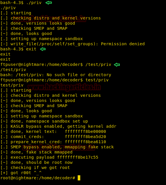 So we exited the shell and ran the exploit as ftpuser. As soon as we run the exploit we get a root shell.
