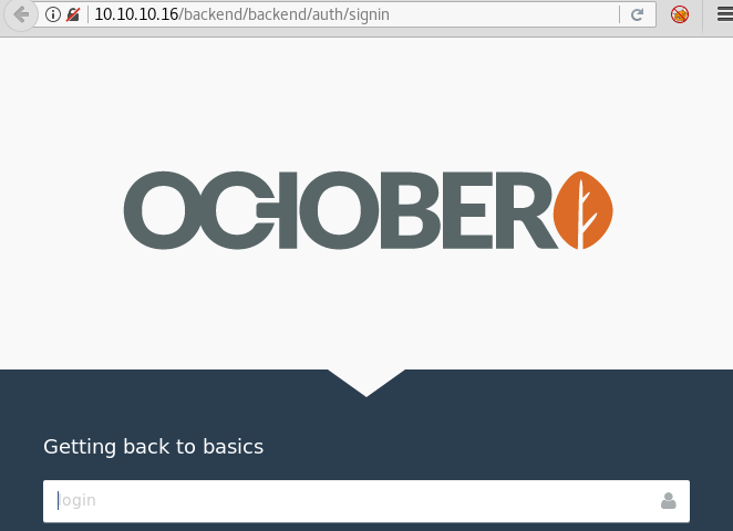 We go to the default admin login page for octobercms at http://10.10.10.16/backend/backend/auth/signin.