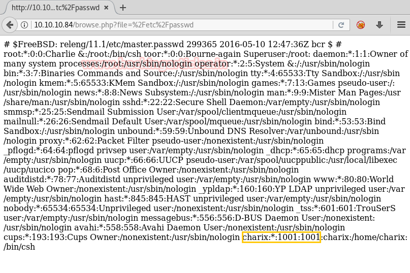 From here we found that the username was “charix.” But before moving on to that part we tried all the script names one by one given in the previous web page.