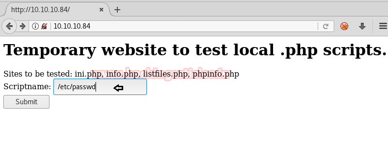 It was crystal clear only by reading that there was an LFI vulnerability involved. So, we tested it by inputting /etc/passwd in the script name section.