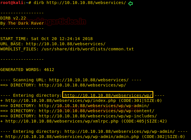dirb http://10.10.10.88 dirb http://10.10.10.88/webservices/
