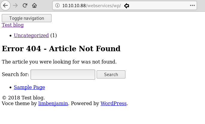 Dirb scan gave us the directory called “/webservices/wp/” that hosts a WordPress site.