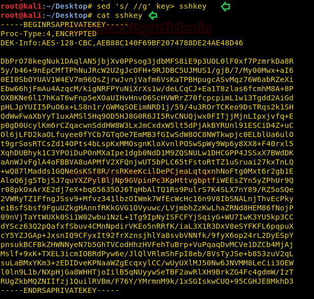 After removing space using sed command, we get our key as shown in the image below. Now all we need is a passphrase.