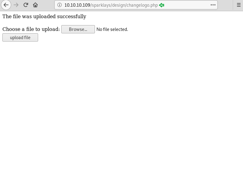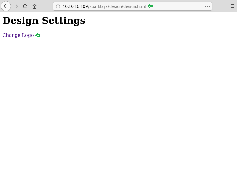From dirb scan, we found a useful directory /design/design.html which we opened in the browser. Since the only thing left to do on this Page is to click on Change Logo.