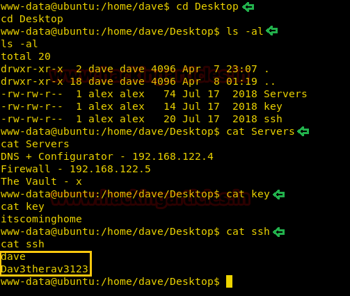 cd Desktop ls -al cat Servers cat key cat ssh