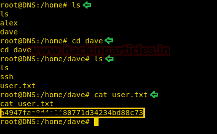 ls cd dave ls cat user.txt