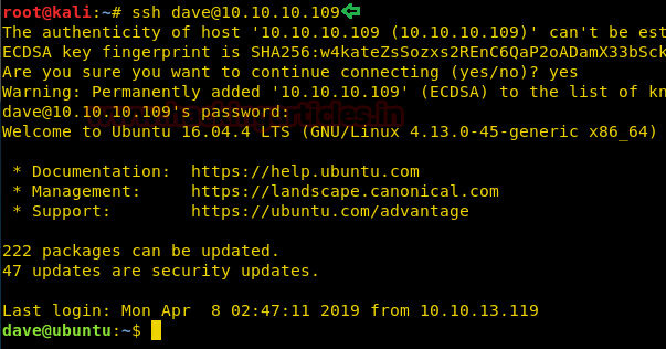 Time to login into ssh.