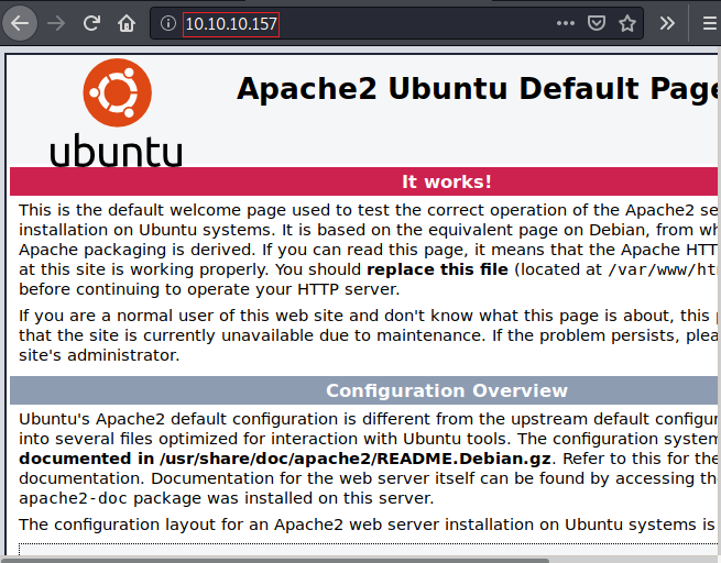 Let’s start with the Port 80. We ran the browser and opened the IP Address of the Machine. It gave us a default Debian Apache is Working Page.