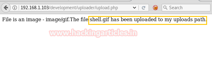 So, we upload shell.gif using the uploader and the following message was received.
