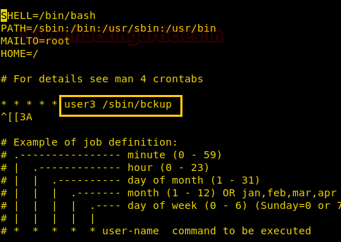 After spawning a shell as user2 we try to enumerate the machine and find that there is cronjob that runs a file called /sbin/bckup for user3.