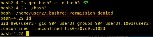 As we effective user id and not the actually used id of user3. We create a c program that spawns a shell as user3’s uid and gid.