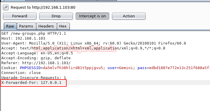 In our case, I use “X-Forwarded-For: 127.0.0.1” and then forward the intercepted HTTP request.