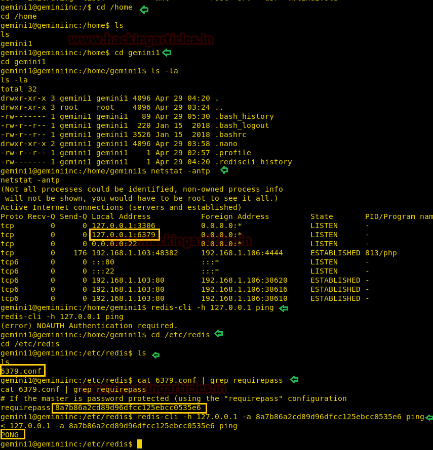cd /etc/redis ls cat 6379.conf | grep requirepass redis-cli -h 127.0.0.1 -a 8a7b86a2cd89d96dfcc125ebcc0535e6 ping