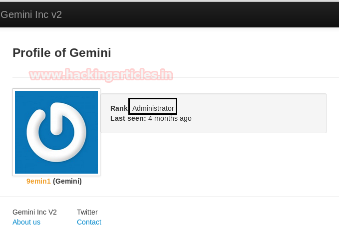 Then I check the profile of 9emin1 which was actually named as Gemini and here I found it is an administrator account.