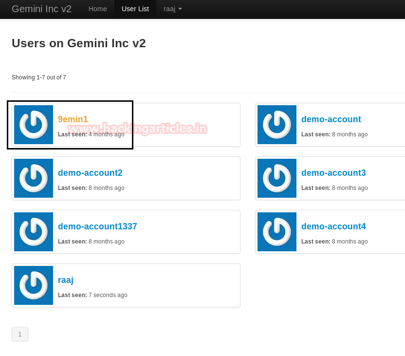 Great, I got login of raaj and then further I explored User List where I found all activated account of other users.