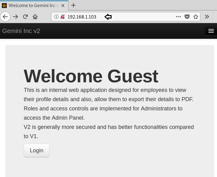 From the nmap scan result, we found port 80 is open for HTTP service, let’s navigate to port 80 in the browser. It put up the Welcome Guest page for login into the web application.