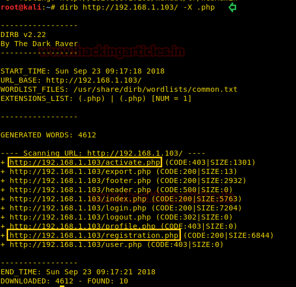 When we didn’t find any remarkable clue from its home page, then without wasting much time, I use dirb for web directory enumeration and ran the following command for .php extension related files: