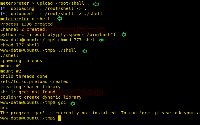 Then upload the compiled shell file into victim’s machine via meterpreter. Then use python one-liner to access the proper terminal and run following command.
