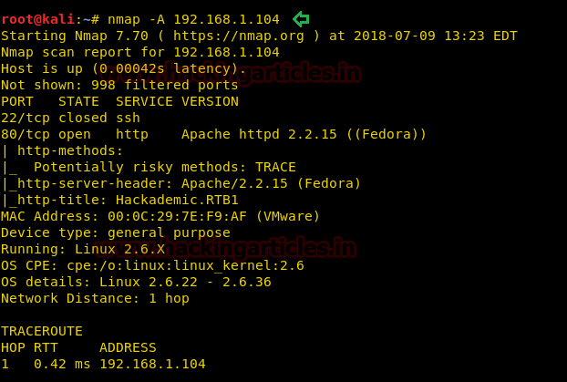 Our target is 192.168.1.104. Now scan the target with nmap :