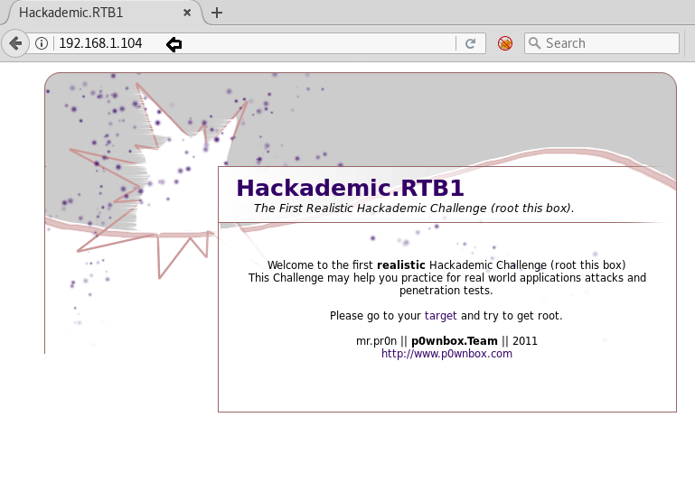 Upon clicking the target, below page will open http://192.168.1.104/Hackademic_RTB1/