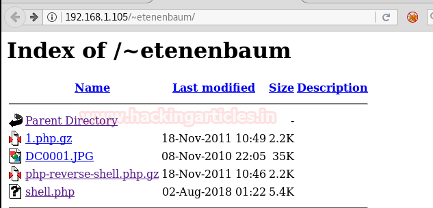 Appended the subdirectory /~etenenbaum/ and browsed URL http://192.168.1.105/~etenenbaum/ and now we were able to see our uploaded file!!