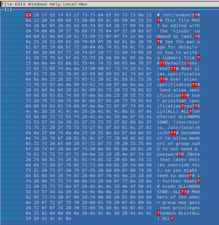 Note: sudo ht will allow editing any file on the system. Hence we will edit the /etc/sudoers file. Before editing the sudoers file make sure to export TERM so we can use graphical component of our command