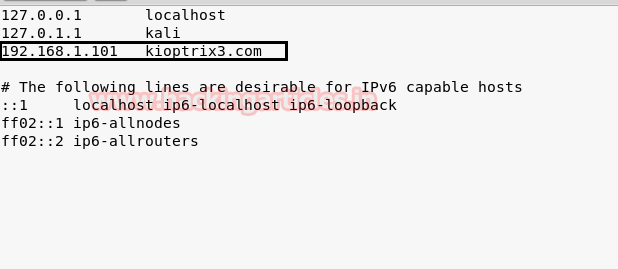 Before navigating to the website, let’s map the host entries for the URL kioptrix3.com to IP 192.168.1.101 in the host’s file as follows :