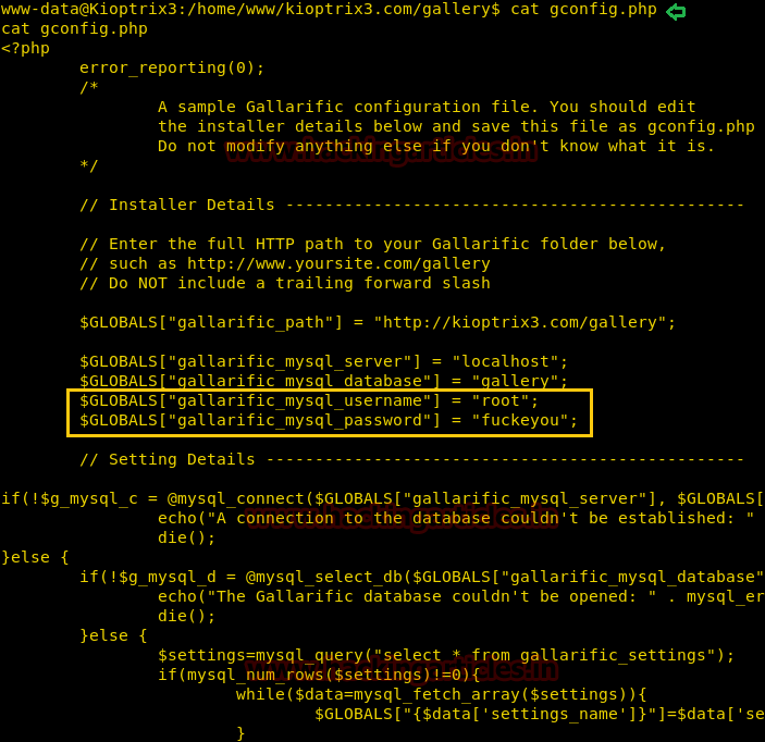 Now navigate to the gallery folder and perform the directory listing. Here we can see many files.I browsed through many of these files; of which the file gconfig.php seems to be interesting.
