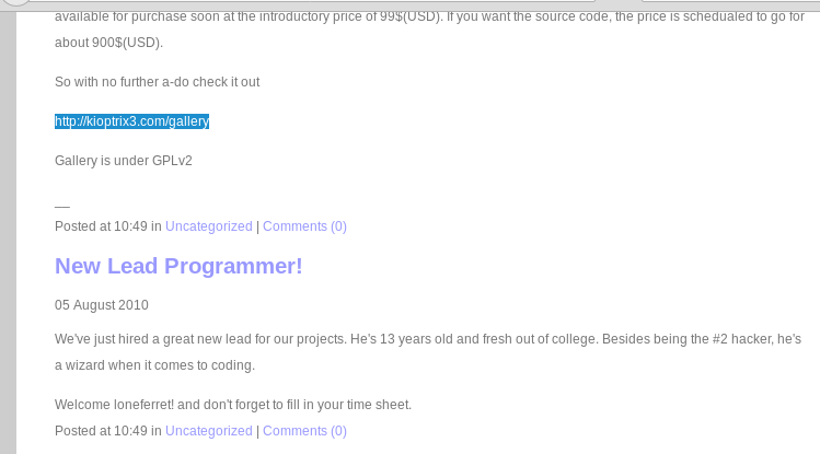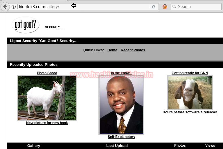 Browse to the website http://kioptrix3.com/gallery and navigate on a few items