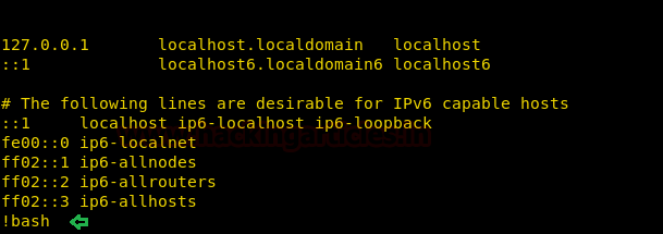 As we know it opens the file in vi mode and since you have run the command with sudo right which means we can get a shell through it. Execute !bash command inside hosts file as shown above and you will get the root shell.