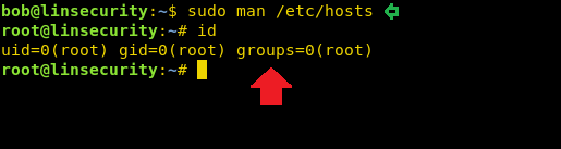 As we know it opens the file in vi mode and since you have run the command with sudo right which means we can get a shell through it. Execute !bash command inside hosts file as shown above and you will get the root shell.