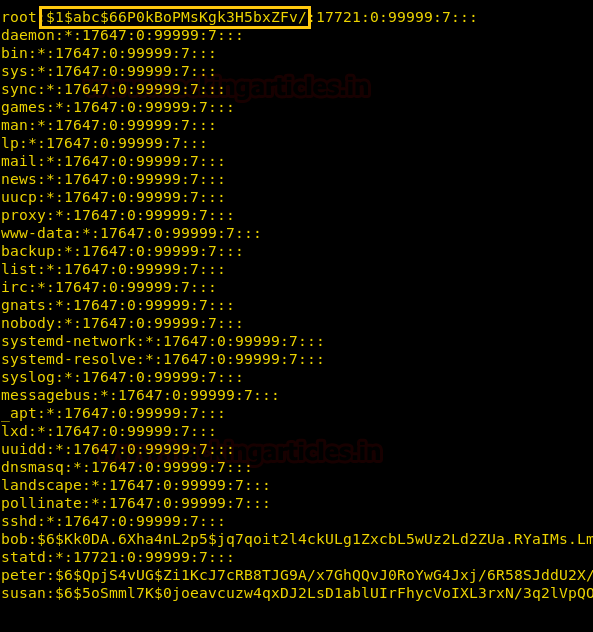 Now paste the above generated encrypted password inside shadow file for user root.