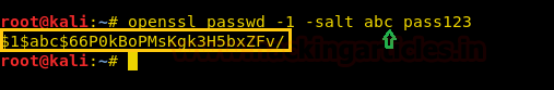 openssl passwd -1 -salt abc pass123