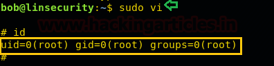 sudo vi :!sh id