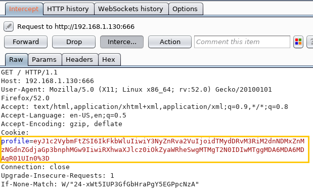 - Burp intercept to capture cookies.