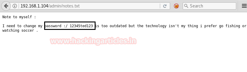 So I looked into notes.txt and notice towards “12345ted123” which is a password.