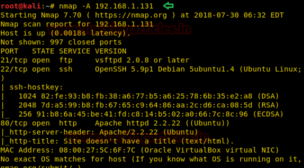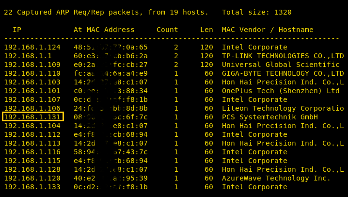 The first step is as always, IP grabbing. In my case, the IP was 192.168.1.131. Use the following command to grab the IP :