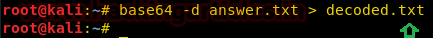 We again downloaded the answer.txt file using wget and decoded it into a new file decoded.txt