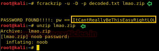 fcrackzip –u –D –p decoded.txt lmao.zip