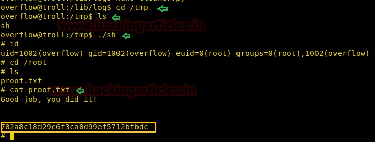 cd /tmp ls ./sh cd /root ls cat proof.txt