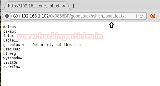 I opened both sub-directories and /good-luck looks interesting to me as it called a lol.txt file which contains a wordlist and might be this could be useful in conducting the brute force attack against ssh login. Also, the folder /this_folder_contains_the_password gave hint “Pass.txt” could be a possible password.