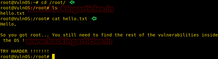 We didn’t have to search a lot for the flag, we moved to the Root Directory and we got the hello.txt which serves as the flag.