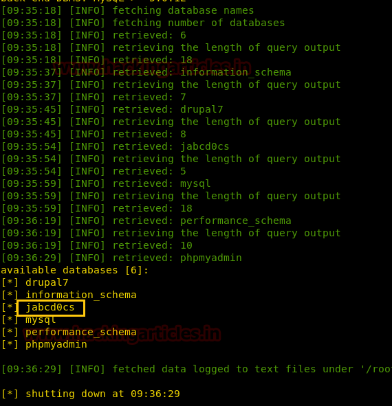 Now we will use sqlmap to find out the database of usernames and passwords and for that type: