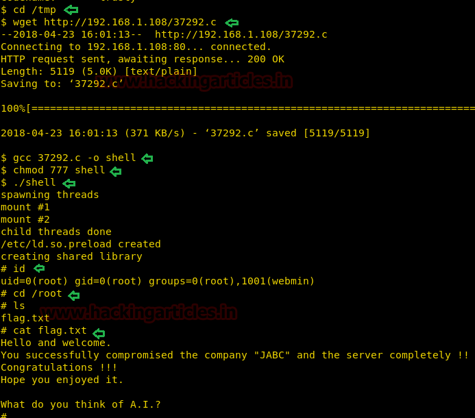 And voila you have reached root but our challenge is not completed here. We still have to find the flag. Once you have reached root then go into the /root directory:
